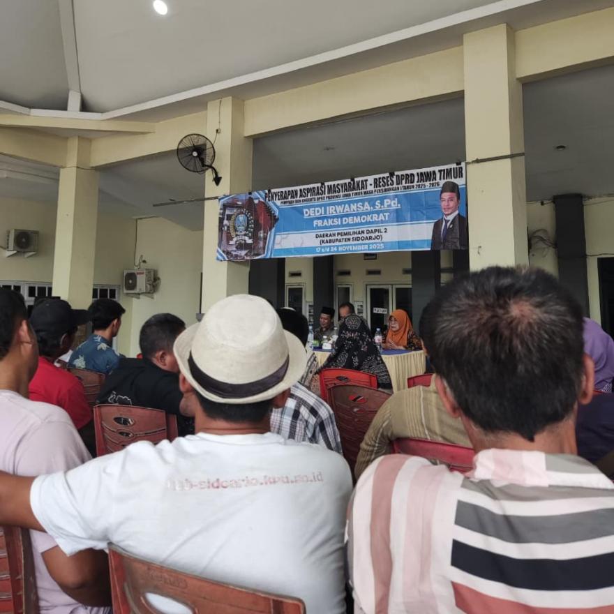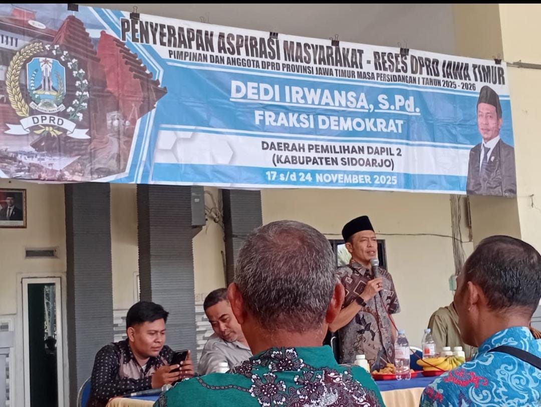 Tropodo, 23 November 2025 — Pemerintah Desa Tropodo menerima kunjungan Anggota DPRD Provinsi Jawa Timur, Dedi Irwansa, S.Pd dalam kegiatan Penyerapan Aspirasi Masyarakat (Reses) yang diselenggarakan di Balai Desa Tropodo pada Minggu pagi. Kegiatan ini mendapat antusias tinggi dari warga yang hadir untuk menyampaikan langsung berbagai kebutuhan, harapan, serta usulan pembangunan di lingkungan Desa Tropodo.